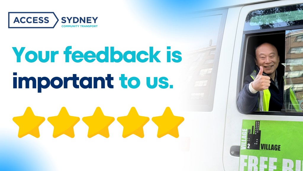Your feedback is important. Please share your thoughts on our Village to Village shuttle services by emailing us at customerservice@accesssydney.org.au